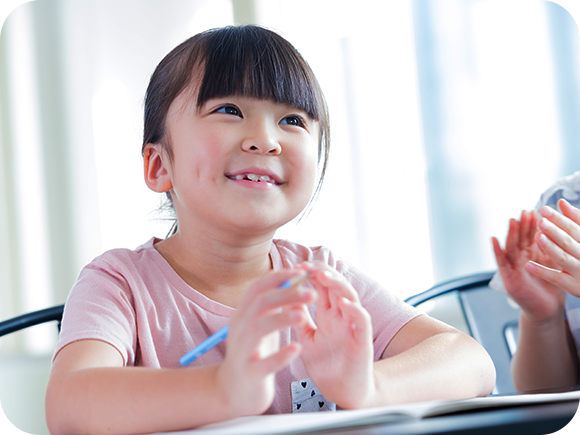 音楽療法・ムービング音育・アート教室・おやつ作りなど、 視覚・聴覚・触覚・嗅覚・味覚の五感を刺激して、 集団・個別、いろいろな角度から総合的なアプローチでこころとからだの成長を促します。